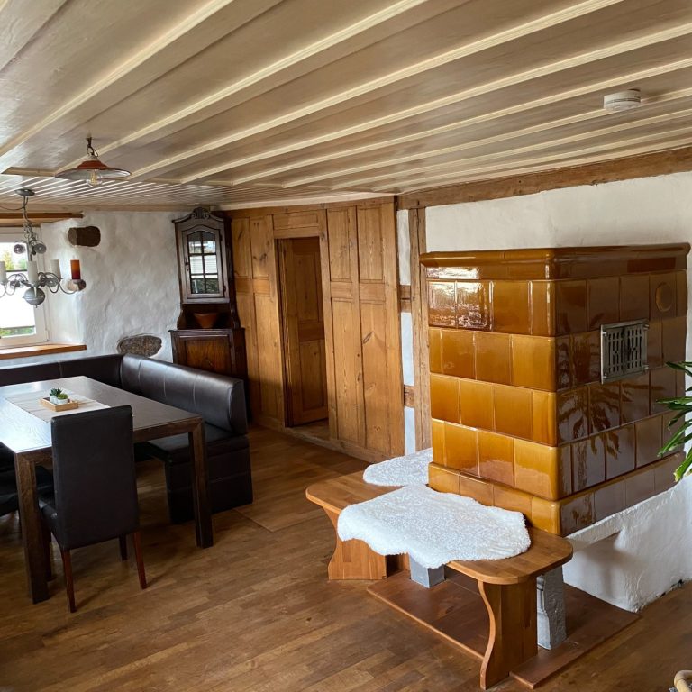 Das Ferienhaus befindet sich im Zentrum eines Dorfes im Schwarzwald. Die historischen Räume strahlen durch ihren Charme eine herzliche Gemütlichkeit aus. Trotzdem sind die Räume technisch auf neustem Stand ausgebaut. Der schöne und traditionelle Grundofen kann an kalten Tagen für eine mollige Wärme im Wohnbereich genutzt werden. Das helle Bad hat eine geräumige Größe mit einer Dusche, einer separaten Badewanne, einem Doppelwaschbecken und einem WC. Zusätzlich gibt es ein kleines Gäste - WC mit Handwaschbecken. Die Sauna im Obergeschoss kann mit max. 3 Personen für einen entspannten Urlaub benutzt werden. In der gut ausgestatteten Küche können Sie ihre Lieblingsmahlzeiten zubereiten. Ein großer Tisch im Wohnzimmer bietet Platz für 10 Personen, somit steht einem gemütlichen Aufenthalt nichts im Wege.